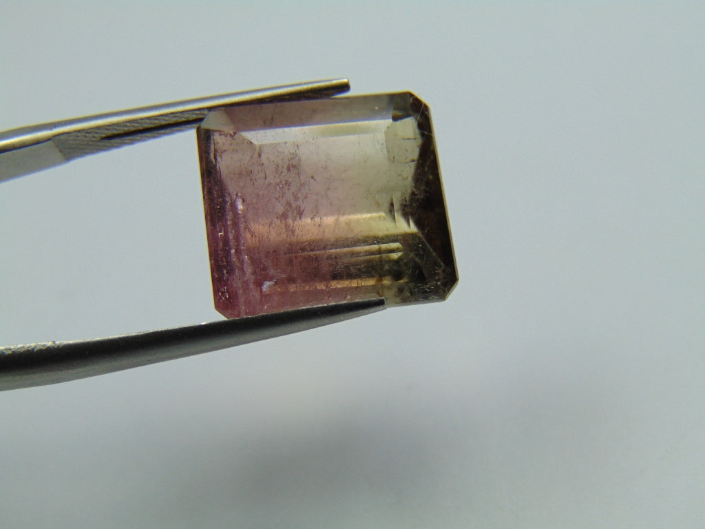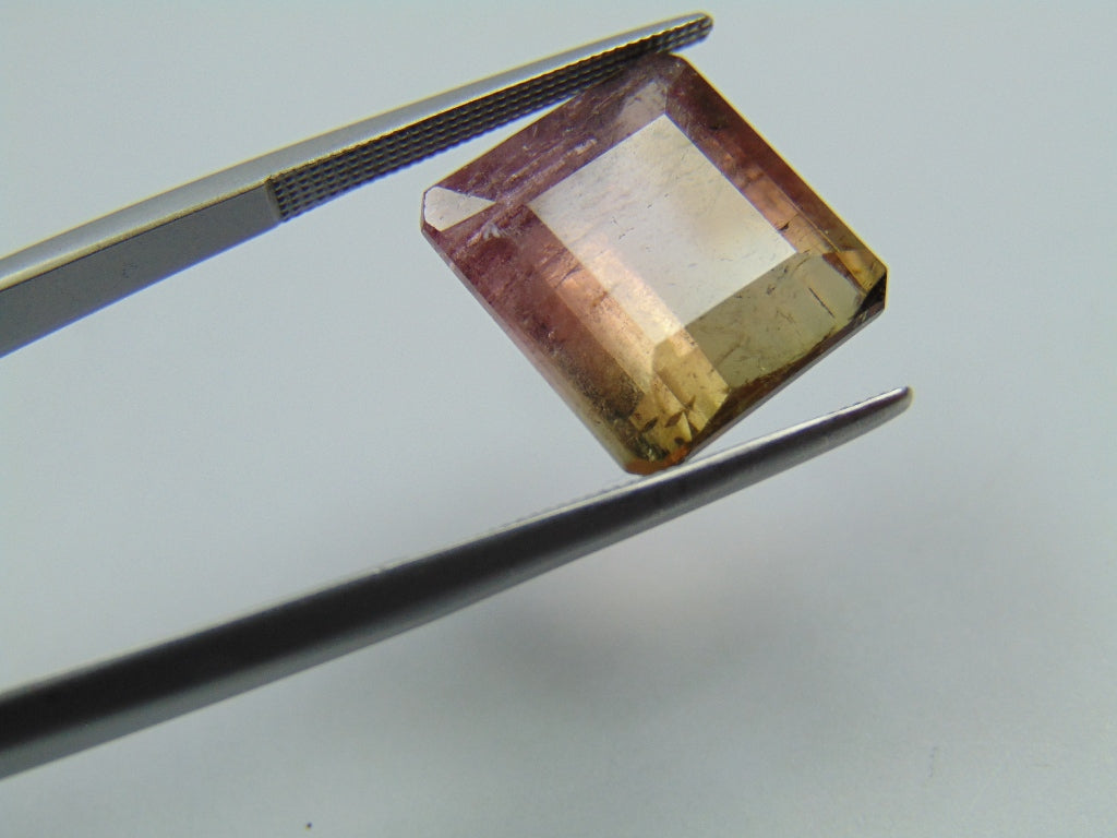 This bicolor Tourmaline gemstone, sourced from Brazil, weighs approximately 11.90 carats and features a retangular cut. This gemstone is available for purchase and can be shipped to many parts of the world.