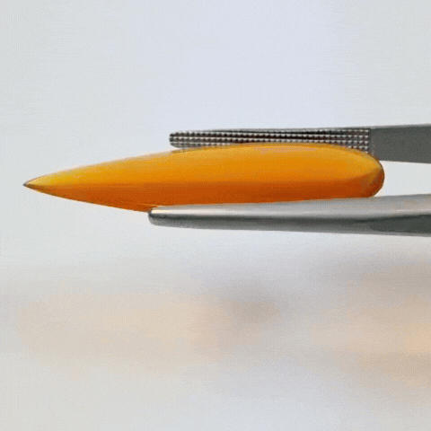 This Fire Opal gemstone, sourced from Brazil, weighs approximately 7.48 carats and features a drop cut. This gemstone is available for purchase and can be shipped to many parts of the world.