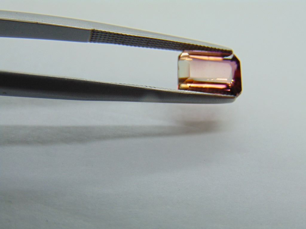 Esta turmalina bicolor é originária do Brasil e pesa cerca de 1.65 quilates. A forma/estilo de corte desta Turmalina bicolor é Retangular/Baguette. Esta Turmalina bicolor está disponível para encomenda e pode ser enviada para qualquer parte do mundo.