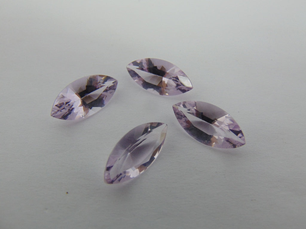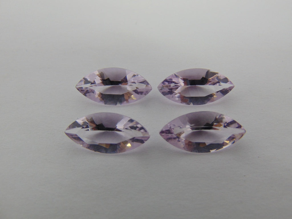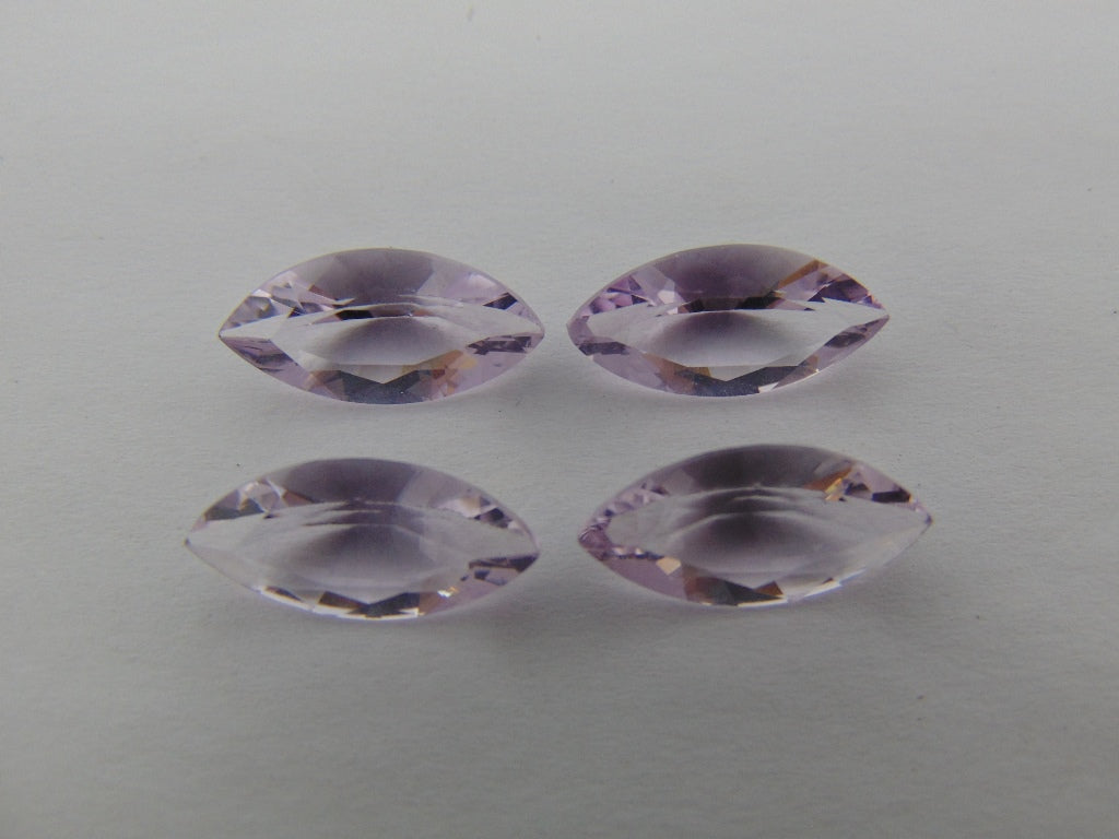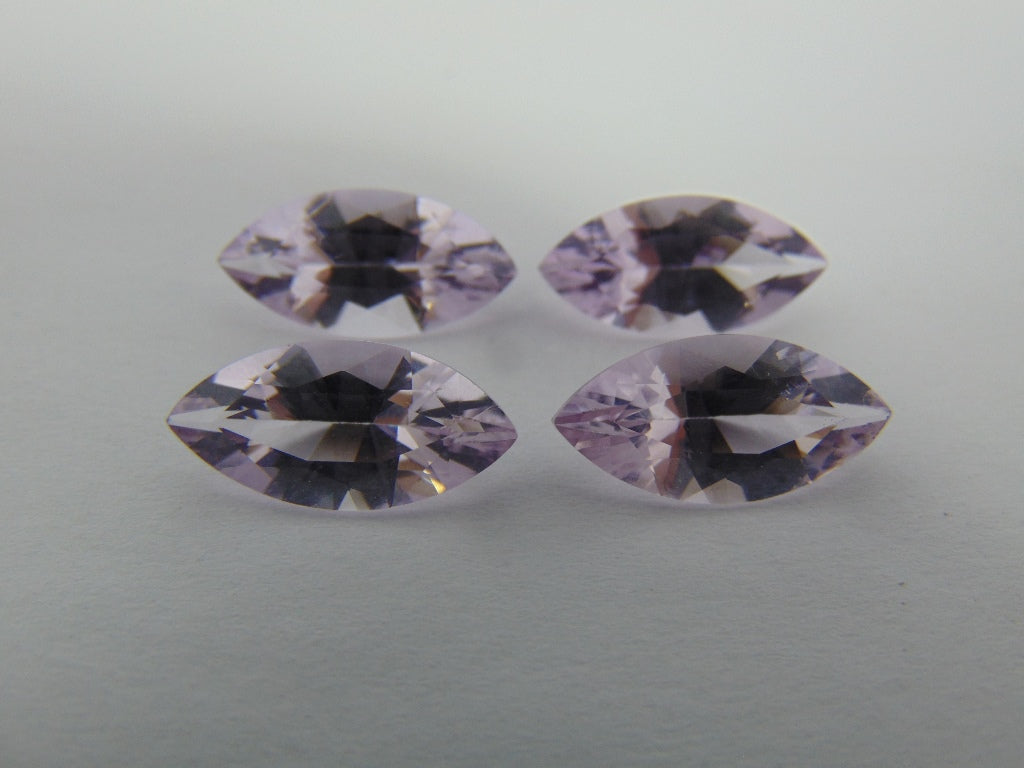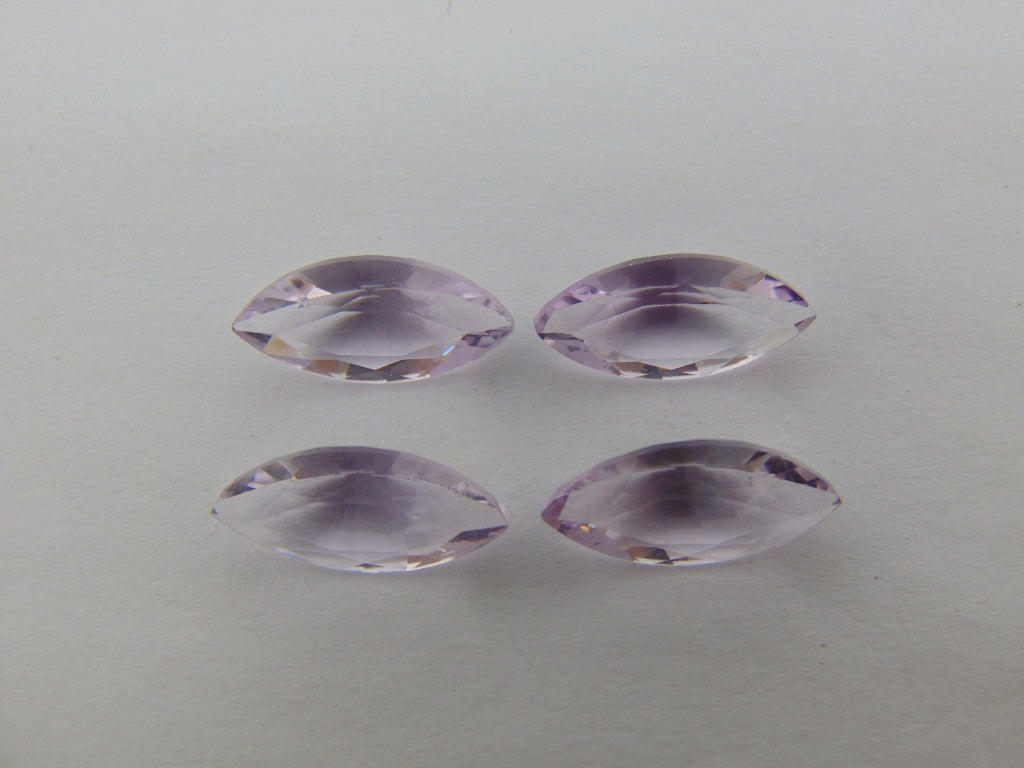 Estes quatro Amethyst Rose France (C alibrado) são originários do Brasil e seu peso é de cerca de 14,40 quilates. A forma/estilo de corte desta Ametista são Navette . Esses quatro Amethyst Rose France C calibrados estão disponíveis para pedido e podem ser enviados para qualquer lugar do mundo.