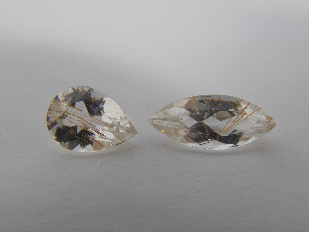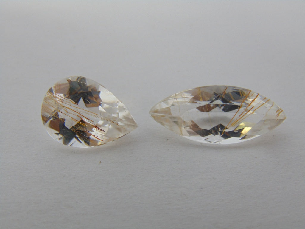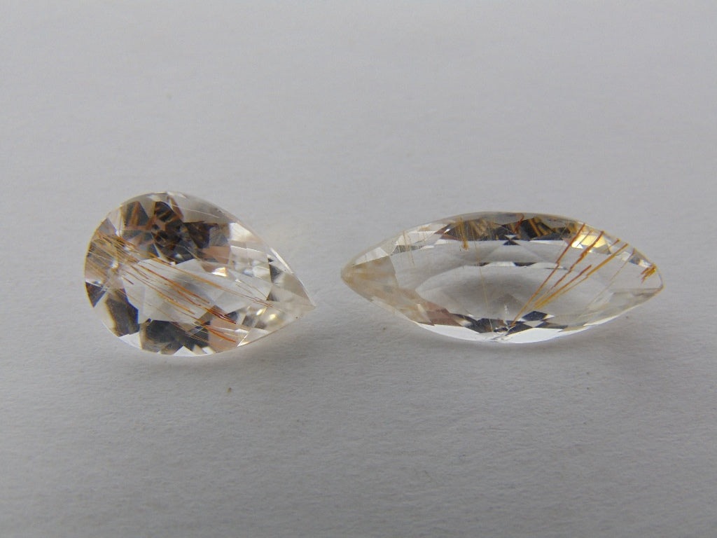 Estes Dois Topázios Com Rútilo Dourado são originários do Brasil e pesam cerca de 14,60 quilates. A forma/estilo de corte destes dois Topázios Com Rutilo Dourado são variados . Estes Topázio Com Rutilo Dourado estão disponíveis para encomenda e podem ser enviados para qualquer parte do mundo.