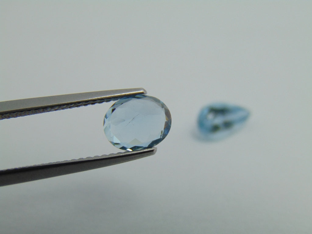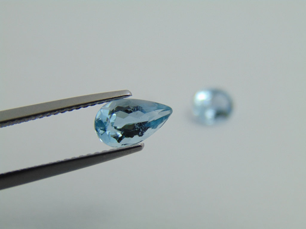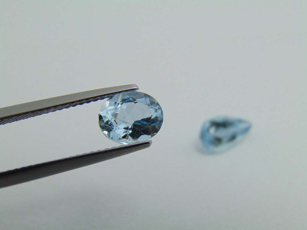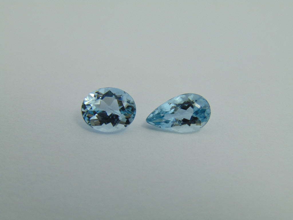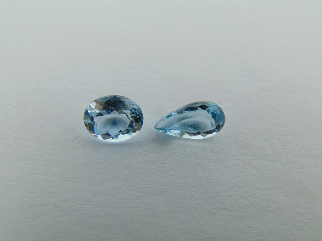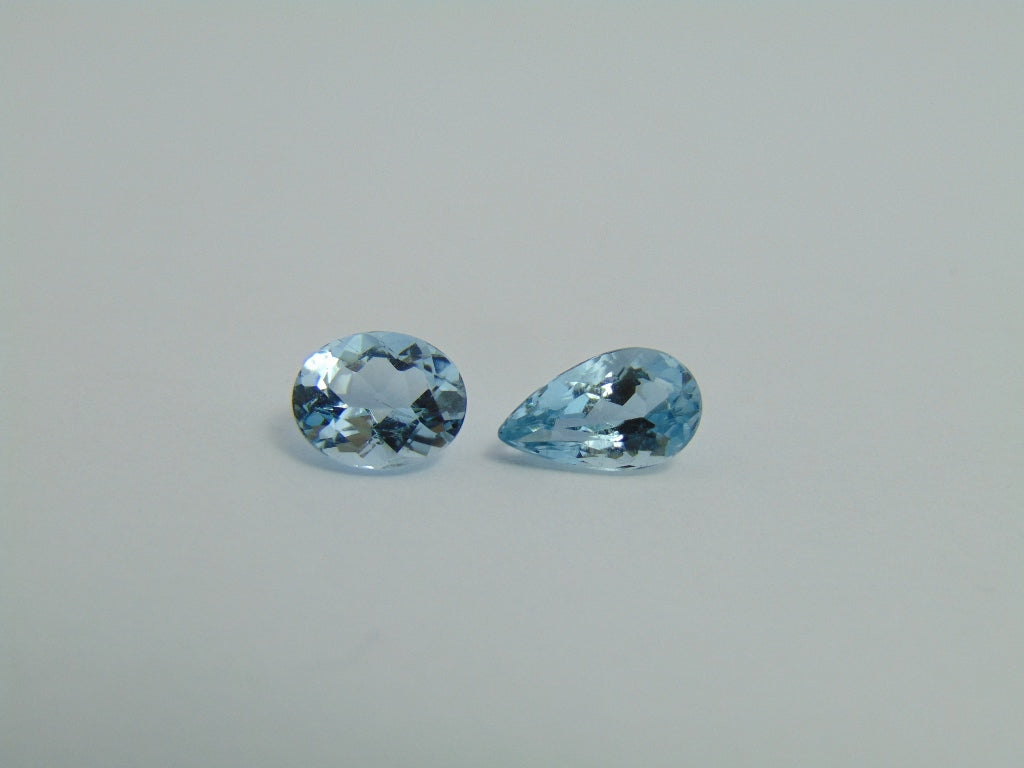Estes dois Aquamarine são originários do Brasil e seu peso é de cerca de 2,40 quilates . A forma/estilo de corte destes Aquamarine é oval e gota. Estes Aquamarine estão disponíveis para encomenda e podem ser enviados para qualquer parte do mundo.