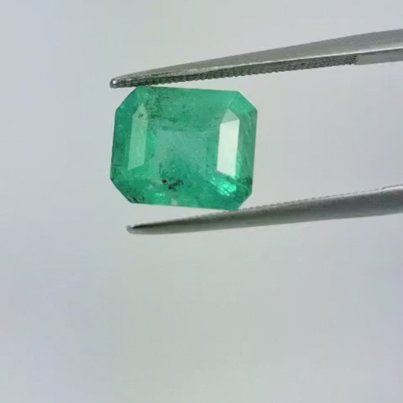 Esta esmeralda é originária do Brasil e pesa aproximadamente 3,67 quilates. Seu formato/lapidação é retangular. Esta esmeralda está disponível para encomenda e pode ser enviada para diversas partes do mundo.