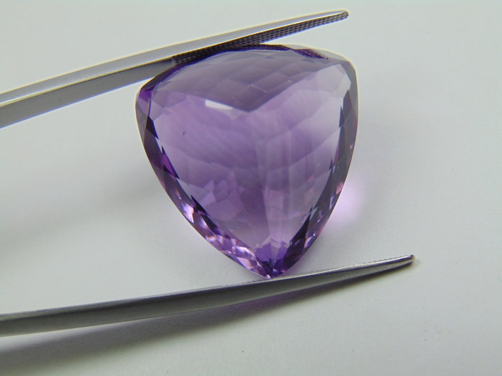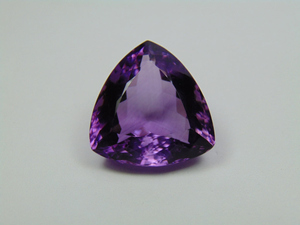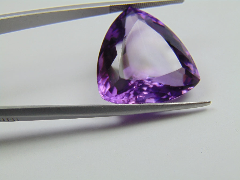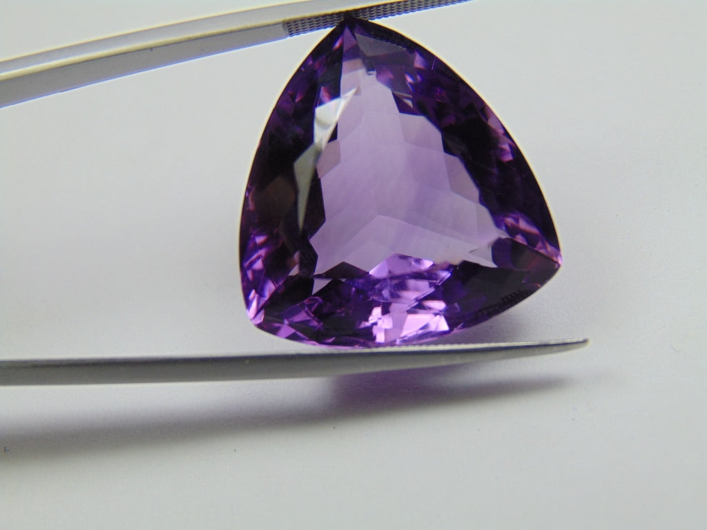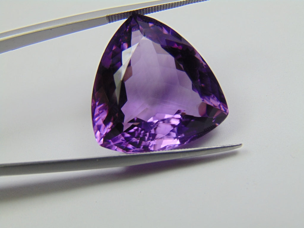 Esta Ametista é originária do Brasil e pesa aproximadamente 34,65 quilates. O formato/estilo de corte desta Ametista é trilhante. Esta pedra preciosa está disponível para encomenda e pode ser enviada para muitas partes do mundo.