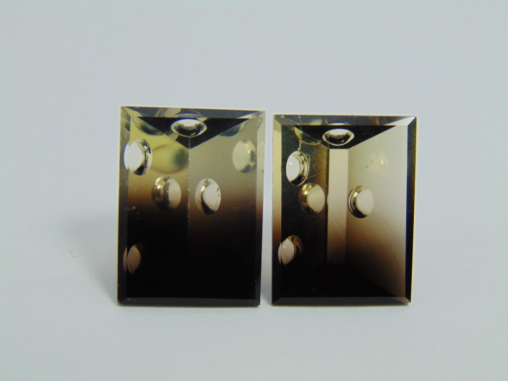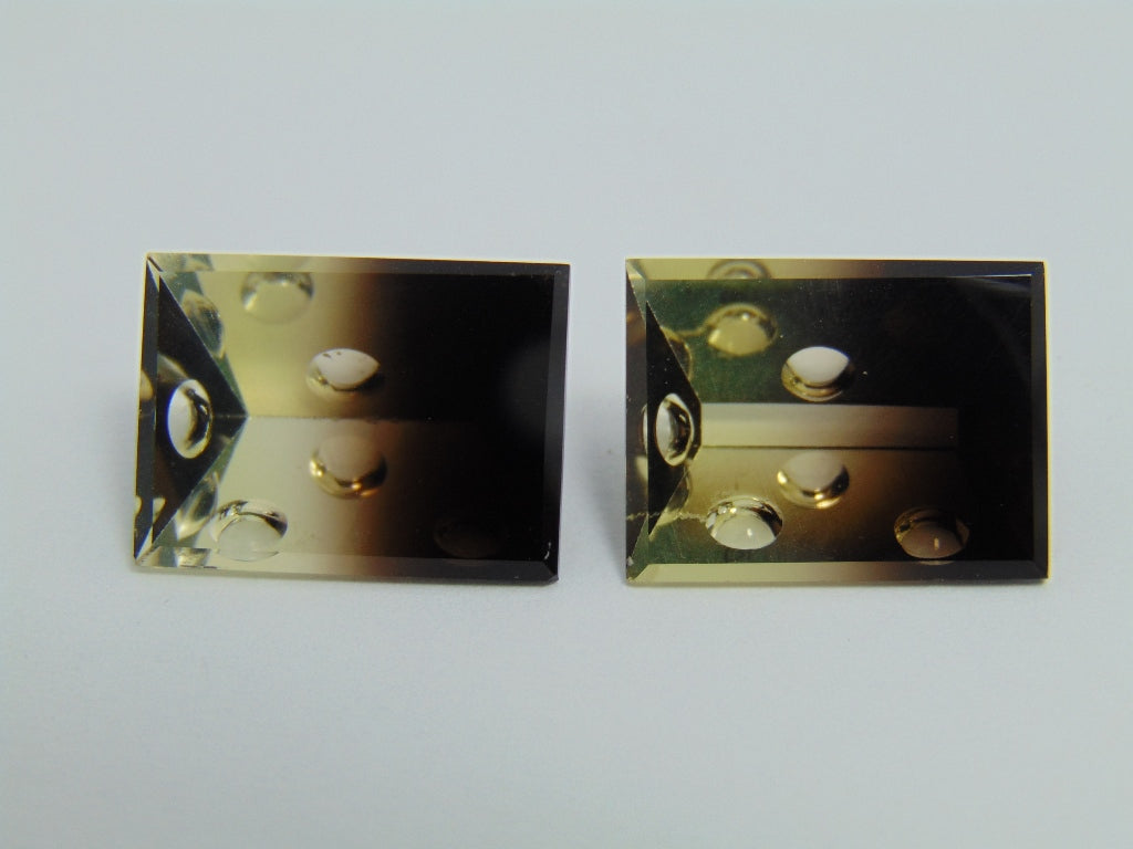 Estes dois pares de Quartz Bicolor (Bubble) são originais do Brasil e seu peso é de cerca de 34 quilates. A forma de estilo / corte de Estes dois pares de quartzo bicolores (bolha) são retangulares. Estes dois pares Quartz Bicolor (Bubble) estão disponíveis para encomenda e podem ser enviados para qualquer parte do mundo.