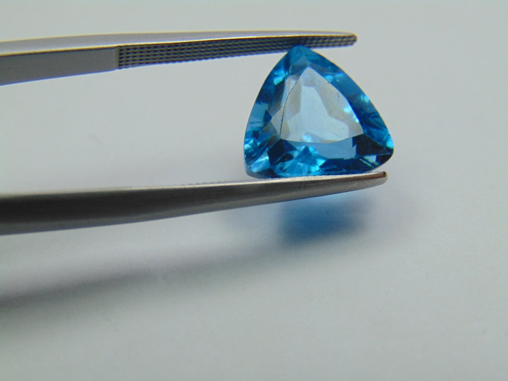 Este Topázio Azul Suíço é originário do Brasil e pesa aproximadamente 5.95 quilates. O formato/estilo de corte deste Topázio é trilhão. Este Topázio Azul Suíço está disponível para compra e pode ser enviado para muitas partes do mundo.