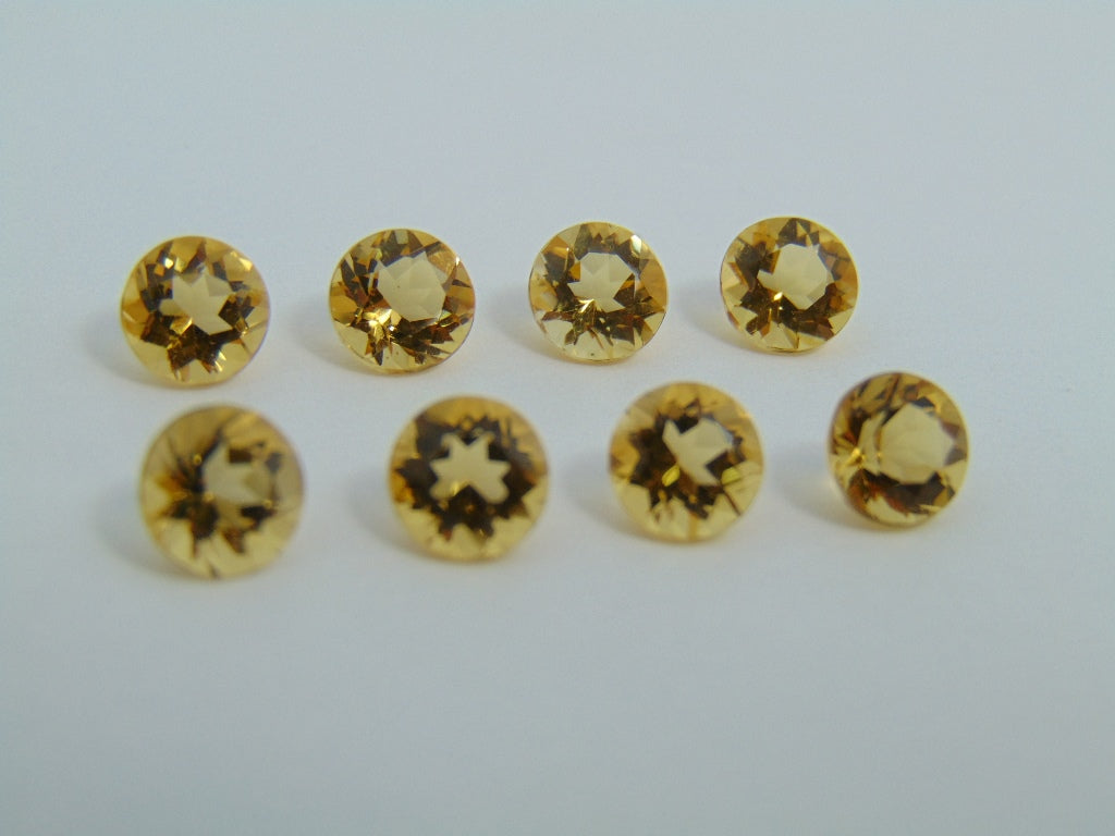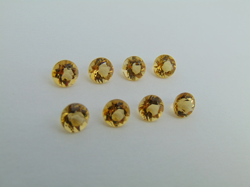 Estas oito gemas Citrino (Calibrado) são originárias do Brasil e seu peso é de cerca de 8,10 quilates. A forma/estilo de corte dessas oito pedras preciosas Citrino (Calibrado) é redonda . Estas oito pedras preciosas Citrino (calibradas) estão disponíveis para encomenda e podem ser enviadas para qualquer parte do mundo.
